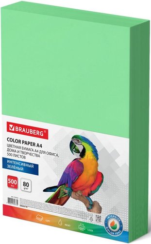 | Офисная бумага BRAUBERG А4 80 г/м2 500 л 115213 (зеленый) | ||||||||||||||||||||||