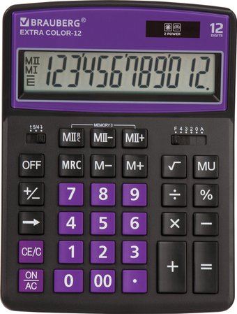 Бухгалтерский калькулятор BRAUBERG Extra Color-12-BKLG 250480 (черный/фиолетовый) | ||||||||||||||||||||||||||||